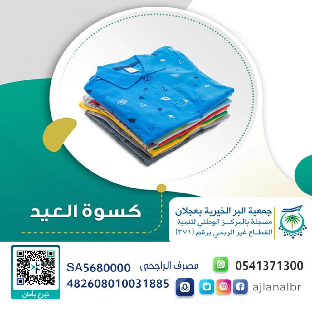 👕👗 تبرع بما تجود به نفسك - تكلفة كسوة طفل يتيم كاملة في جمعية البر الخيرية بعجلان لهذا العام 1447 هـ هي بإذن الله 200 ريال سعودي .