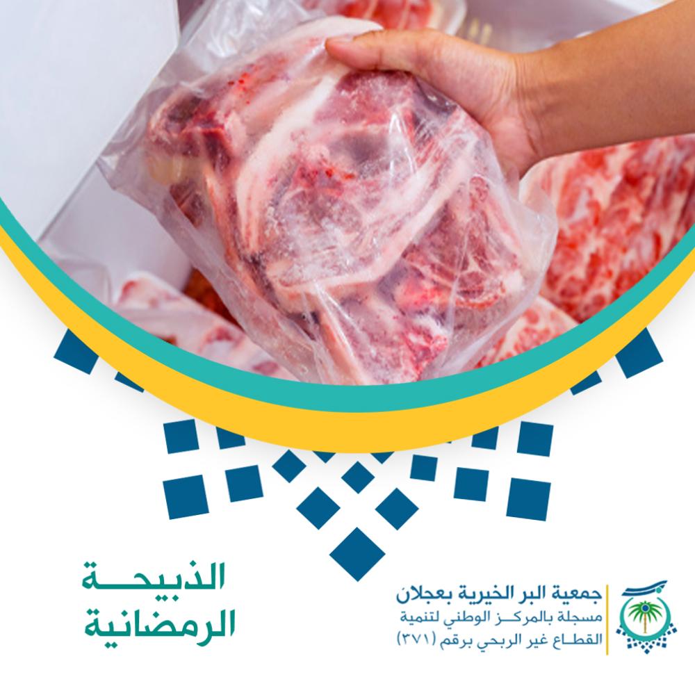 في شهر رمضان المبارك، يقدم مشروع تبرع الذبيحة الرمضانية من جمعية البر الخيرية بعجلان (بترخيص 371) لإطعام عشرات الصائمين، وإدخال الفرح على مئات الأسر المتعففة والأيتام والأرامل في عجلان وضواحيها وهو فرصة ذهبية لإحياء سنة سيدنا إبراهيم عليه السلام، ففي شهرِ الرحمةِ والمغفرةِ، تتجلَّي مشاريعُ الخيرِ ليشرق في الحياة نورالإحسان، ولتنبض القلوب إحساناً وعطاء..